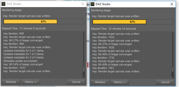 And the weirdly, 20 minutes later, the iterations are almost doubled, but the % done is still the same at 67%