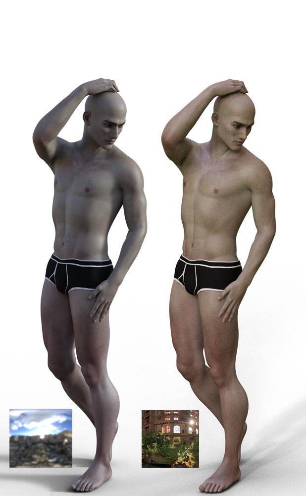 My comparison render was using the default lighting, which looks much like the results on the left of this. I did find that hitting him with a strong warm light seemed to offset the issue, but since I'm working with a night scene, that wasn't exactly the direction I wanted to go. I've done some tinkering, and got the skin tones to work more with what I had in mind, so it worked out. I love the character and the makeup/tattoo options (I have most of the tattoo sets, love @DarwinsMishap 's work!), and I'm pretty pale myself - just found the blue tone disconcerting, when compared to promo renders.
