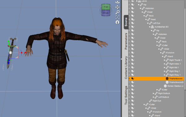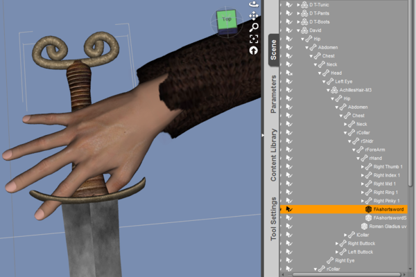 Does anyone know how to fix the problem with not being able to parent anything to the hand of the David 3 figure? I keep trying to parent a sword to his hand but whenever I change his position, the sword does not move with him.