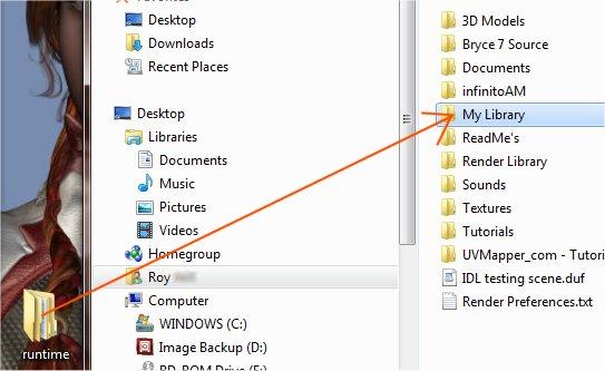 Here is screen shots showing the folders and simply how to drag and drop the runtime folder from your desktop to the My Library Folder.