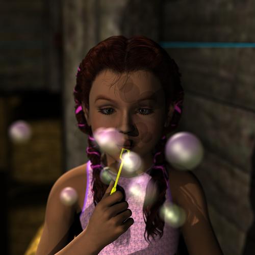 Posing, lighting and camera from scratch. No presets used. New textures applied to bubbles and shirt.