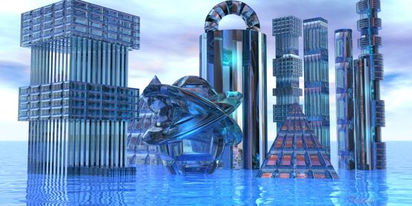 Entry #2 If you want to beat the heat come to Atlantis City ..the city half in and half out of the water.....I made everything except the water material.