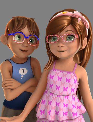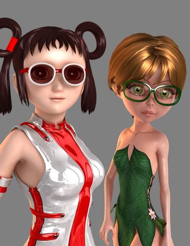 SPEX for Genesis is a pair of conforming, morphing glasses for Genesis. SPEX fits 37 characters in the Genesis gene pool, including generations 3, 4 and 5 Michael, Victoria, Aiko, Hiro, Freak, Stephanie, David (3 and 5 only), The Girl 4, and the Young Teens Julie and Justin, Genesis Basic Male, Female, and Child, Troll for Genesis, Sadie and Sam, Mavka, Jason and Jasmin, Chibi Boy and Chibi Girl, Hitomi, and Satsuki. Also supported are Genesis Evolution Head Morphs and Expressions, Manly Men, Bruisers Thugs and Tough Guys, Aaron and Andrea, Genesis Ethnicity Morphs, Azumi, Dryden, Takeo, Benjamin, James, Candace, Riley, Emilie and Edward Odd, Dean, Sean, Gunner, and Neo, as well as all head morphs that came with each of the above listed characters. I think that's all of them. And if your favorite morph is not on the list, SPEX comes with a second pair of morphing glasses with the same functionality as original SPEX without the character morphs built in. Simply select your figure's head and the glasses are smart-propped. This includes the new Genesis 2 Female and the original DAZ characters, such as Victoria 4, Aiko 3, David, and any other monster or alien in your arsenal.