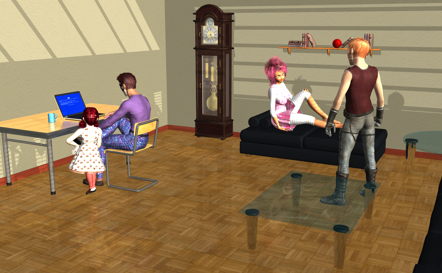 Sindy and Mark were trying to figure out why their Windows program would not load up.It just kept comming up as Windows Not Found. Candice and Carl couldn't be bothered with the laptop as they had so many other things to talk about, like where their next gig was gonna be for the band they were in.
