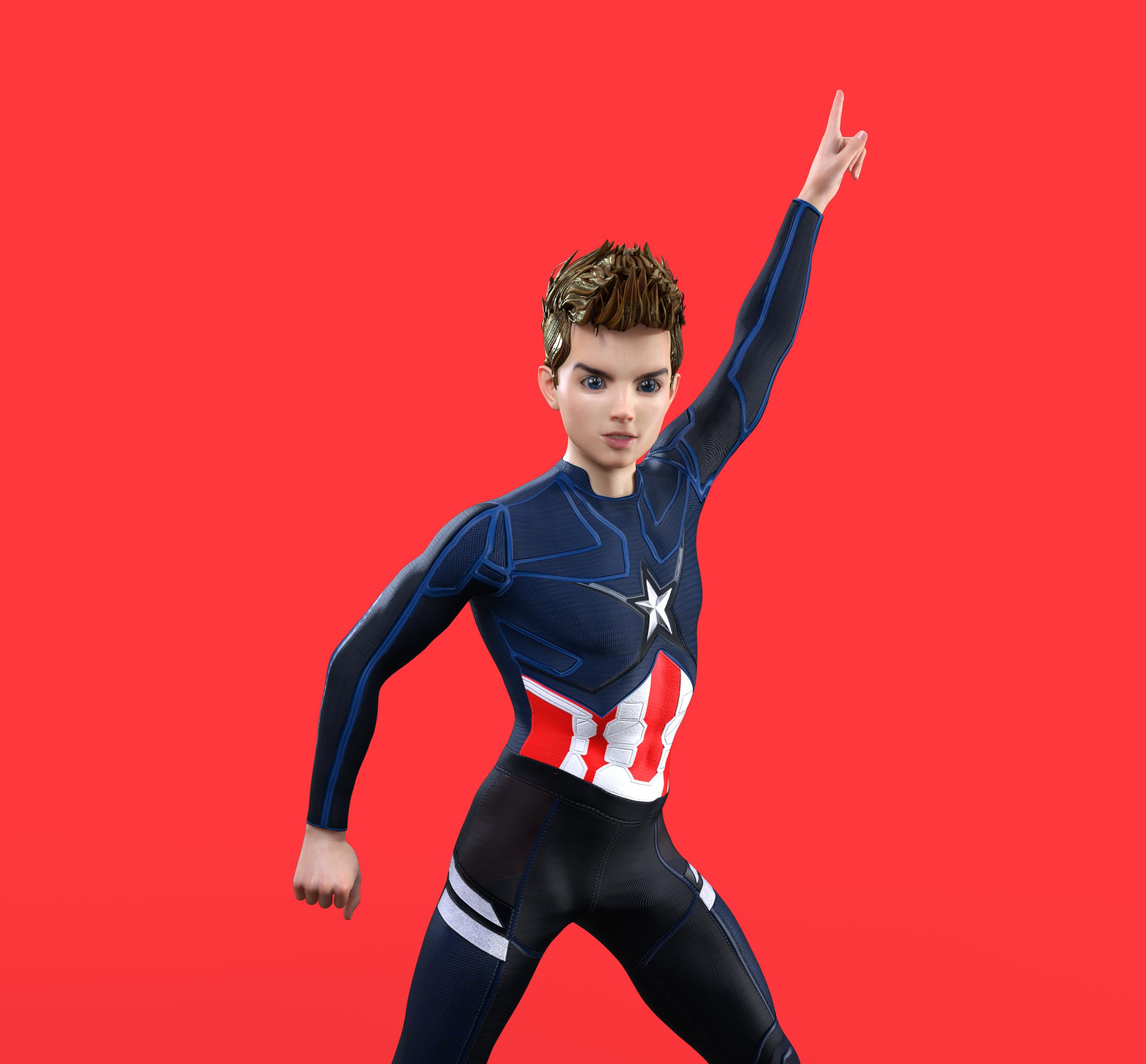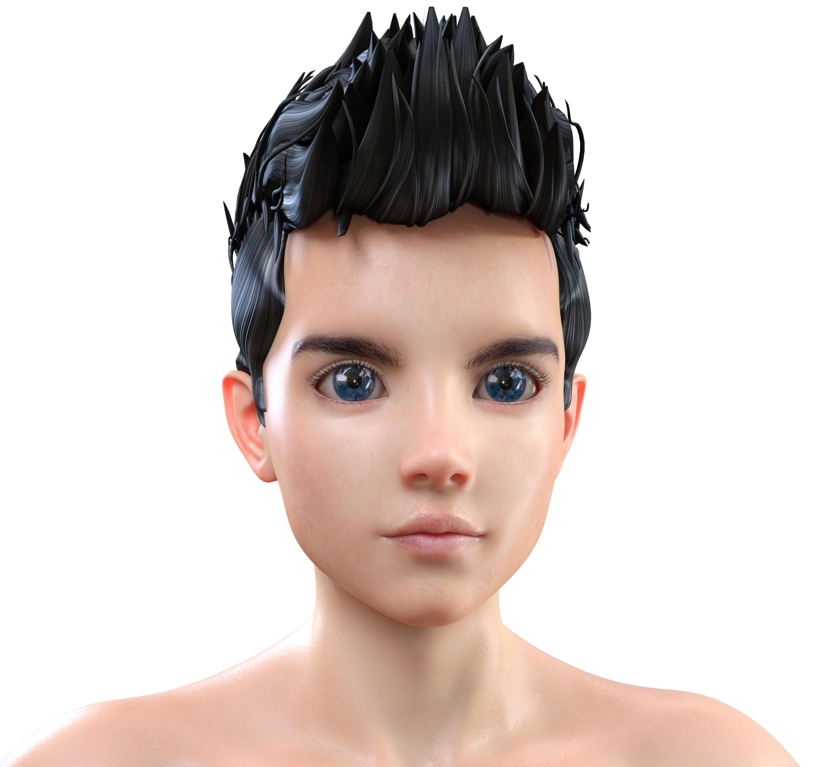 Here is Michel, a new stylized male character. He actually comes with armor texturing as well, not shown in my renders. I think he's a cute character and takes on expressions well. While not shown, his morphs do mix very well with other characters to give the regular characters a "cuter" look.