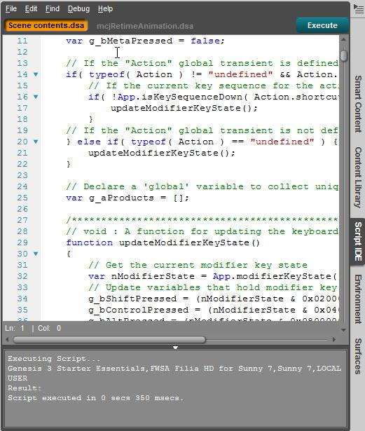 As Richard said, I saved it as a .dsa in my script folder then open it in the Script IDE pane (you can open that via the Window/Panes (Tabs) from the main menu). Select an item in the Scene pane and click on the Execute button in the Script pane. The result will be shown in the gray box at the bottom.