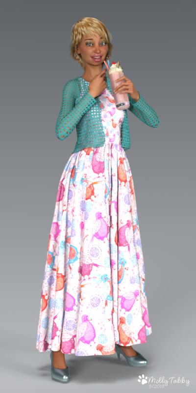 and it can be found on sharecg at https://www.sharecg.com/v/90180/view/21/DAZ-Studio/Winter-Dress-for-G8F. @RenderGuyNY has lots of freebies on his thread, including some figures. This dress comes with a range of textures and the cardigan is in a lace or full knit version. I've rendered these using the choices offered. As you can see they are lovely and really suit Dottie.