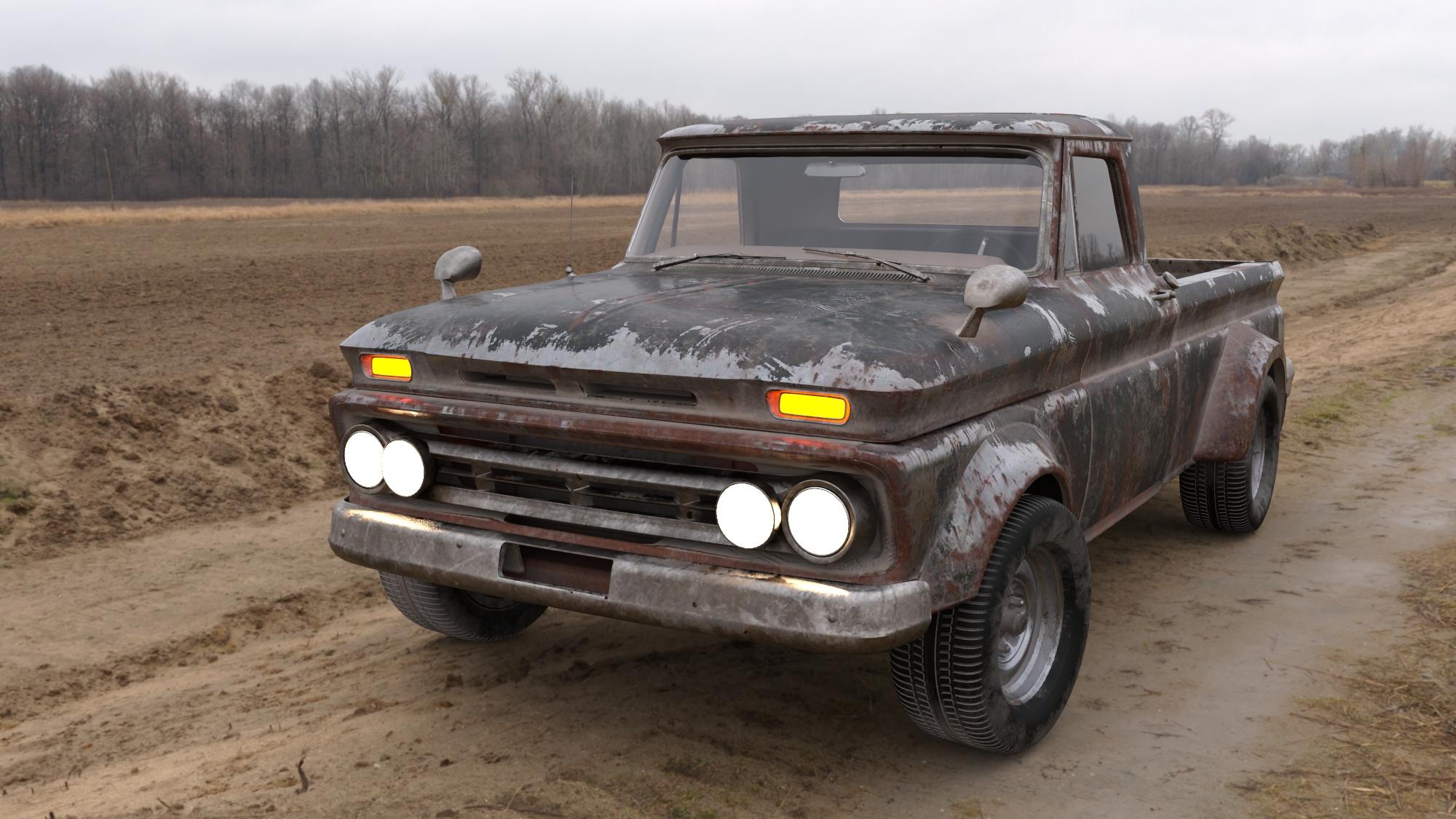 Edit: I just noticed that the windshield glass of the pickup (haven't checked the others) has too much distortion. Look at the way the seats and truck bed look through the windshield. Changing the glass shader from solid to thin might help.