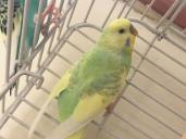Jack (the lime green male budgie) was out of his cage and then went back in today which is just as well because it made it much easier for me to entice Jill to step up on my finger.
