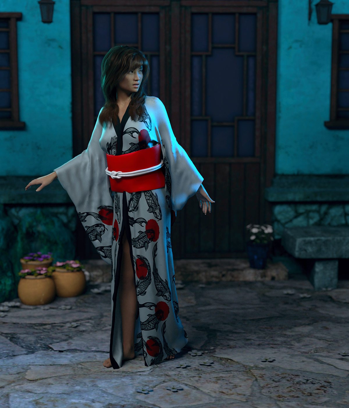 Yoshie HD (Mei Lin 8)        Layered Fringe Hair (Gen3/8F)       dForce Kimono Outfit (Gen8F)      The Streets of Asia 2