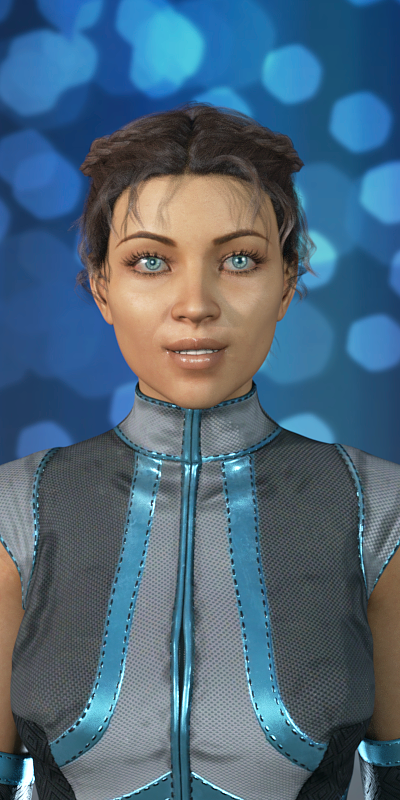 Here's the Erika texture with high bump, medium translucency. There are no brow options, other skin options, eye colors, etc, just like your typical character.