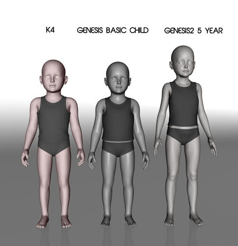 Comparison between Kids4, Genesis basic child morph and Genesis2 5 year morph.