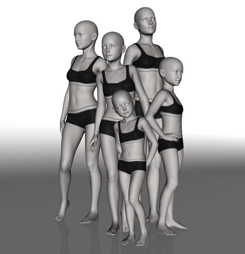 Here is an updated version of the child and teen comparison both in default state and next to them with the child weight morph dialled up slightly. Still need to tackle the breasts but its getting there.