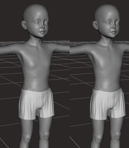 With regards to a 5 year old shape, I don't like pre-determining what that is since they vary and there are tons of shaping morphs to change that such as Shape Shift. All I did was match the proportions that is relative to that age group. So my aim was to keep it as close to the base shape (default state) as possible, meaning more morphs can be added if users wished to change things up. If it is too defined or specific, you lose universal compatibility, and I like to make stuff that is as flexible as possible, because I like choice:)