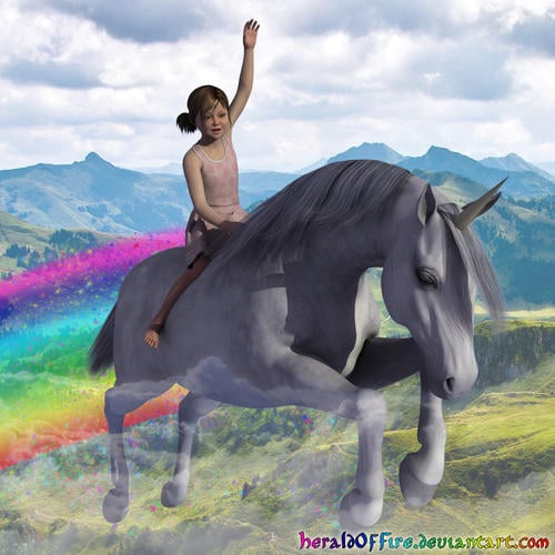 I really love the textures which come with the growing up pack, and the morphs play very nicely with some of the others available for Genesis 2. It didn't escape my notice that the textures were still named after the original Piper figure though. Anyway, I finally managed to put something together so here's Polly riding a unicorn.
