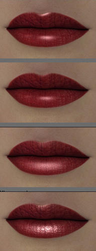 The glossy lips effect really depends on whether your texture has a specularity map or not. If no map, then glossiness can look pretty bad... see my first example. This is with regular default shader, specular color almost pure white, glossiness 80%, specular strength 100%. With a specular map in the spec strength channel, these same settings give you pic 2, not strong enough but more controlled. So, lowering the glossiness to 65% and moving the spec map to the spec color channel, I was able to get the third pic. Still not great. Next, I changed the shader to the Human Surface Shader to get more settings. You have to adjust the bump after switching (be sure to turn it on, too), at least I did, since the bump on the original texture was set very low. I lowered glossiness to 25% to spread it more, then increased spec sharpness to 25% to sharpen the highlight. I also employed Specular 2, set at it's defaults (100% strength, white color) with the spec map in it's color channel. The final looks quite good, I think. Of course, you will have to mess with things yourself depending on the spec map you use and the color of the lips, etc.