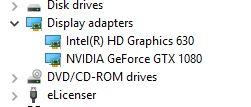 My computer shows both drivers in the device manager. .One for the 1080 card and one for the intel graphics. I am trying to post a screen shot, but it doesn't load the jpg, no matter how many times I try.