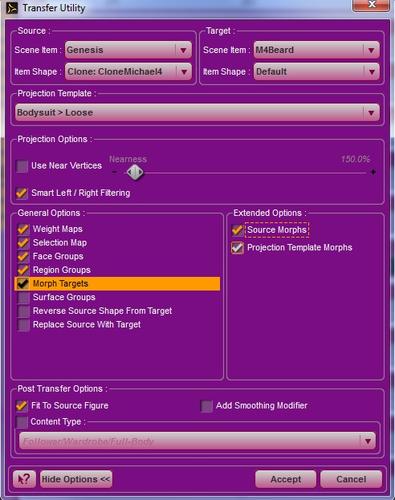 so far I have added the morphs to the M4 morphing beard (the only other one I had) using the transfer utility but they did not export over to 3DX5