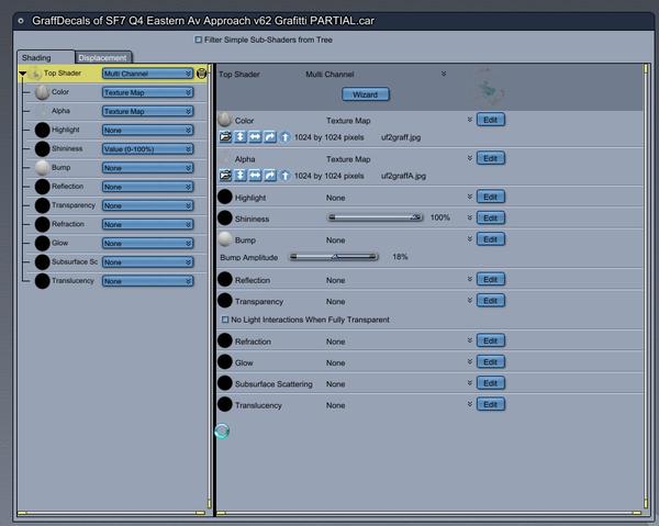 Is there a way of working with Alpha maps so as not to get the unwanted shading around the Grafitti (see bottom right)?