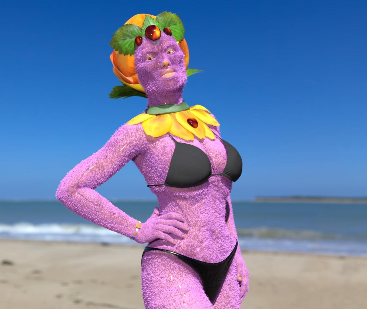 A test render of Genesis 8 Female and the presets included with Oso Fur shaders.