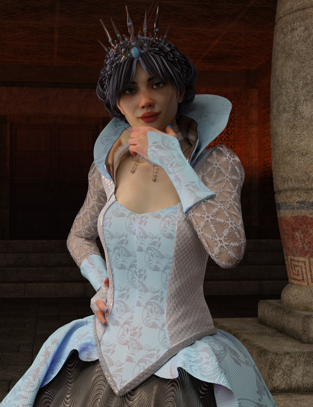 Thank you! The dress is the Deliciously Evil Queen for G3F, converted with RiversoftArt's Clothing conversion script. One of the nicest things about this script is that there is no distortion in the long dresses at all. Total game changer! I changed up the materials with some shaders, although I don't rmember which ones, I usually try a bunch of them.