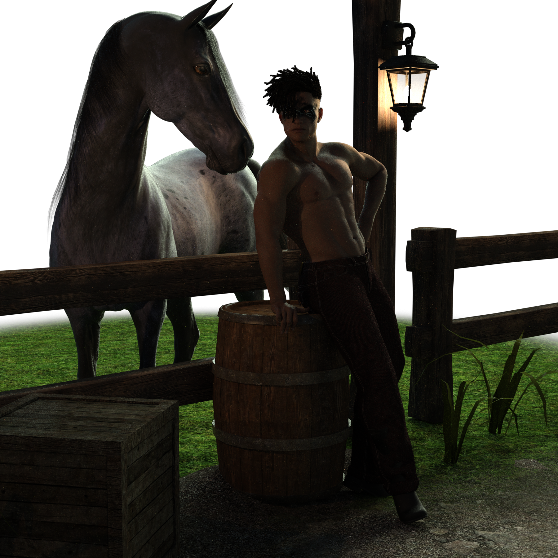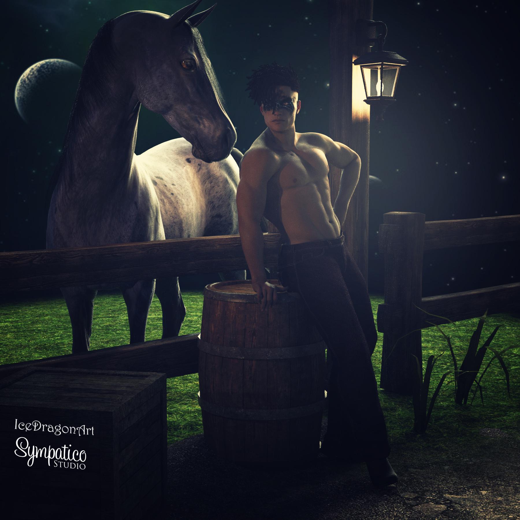 I adore the whole composition, with the light-post, the horse and the moonlit sky. Amazing work!