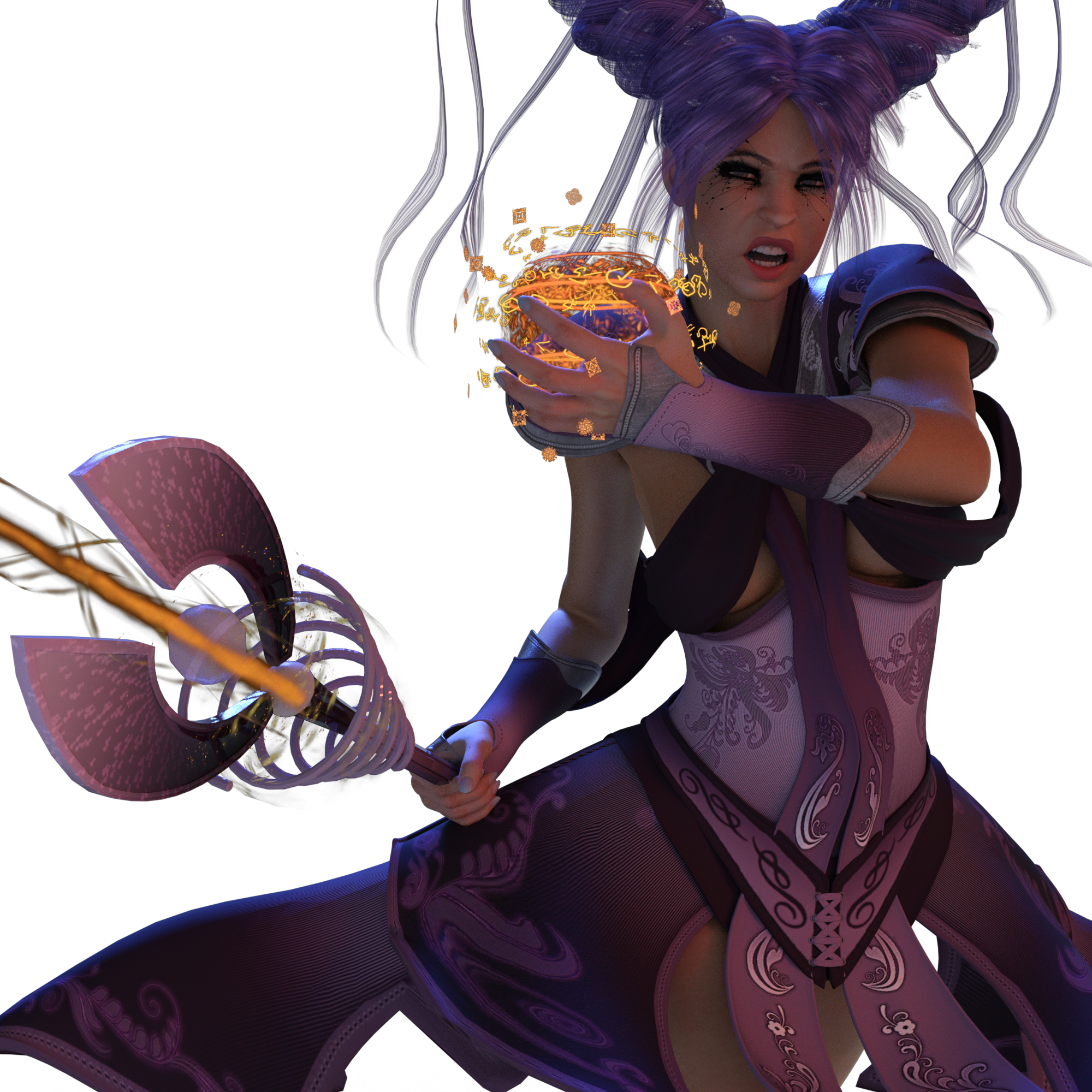 She's for V4?! Wow, she looks totally amazing! I love the purple and golden colour scheme she's got, and how some of her little spells(?) are literally floating in the air around her hand.