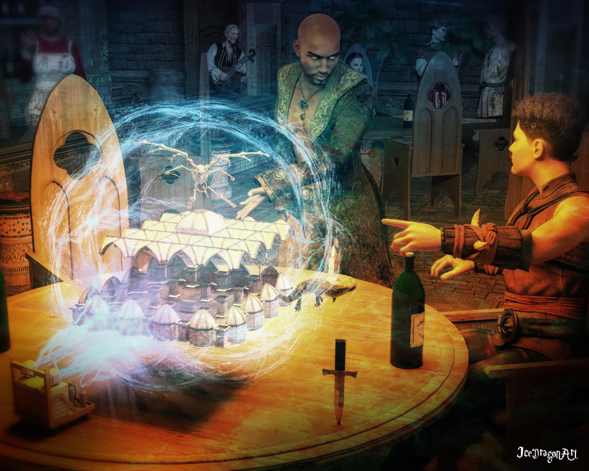 Bit of fun with magic.  This blue magic shield and the pose is from the Surge  prop and pose pack.   Quite handy to have some poses that use the magical props. The fire is from Jepe's dragonfire iray (I think its the dragon fire. I own all but one or two of his sets and they are all grouped together but, if you want fantastic magic effects in addtion to the Surge props, you can't go wrong with Jepe's stuff)  The mage is Amaya by Anagord.  If you want female characters that have strong but beautiful faces, her characters are a good choice.