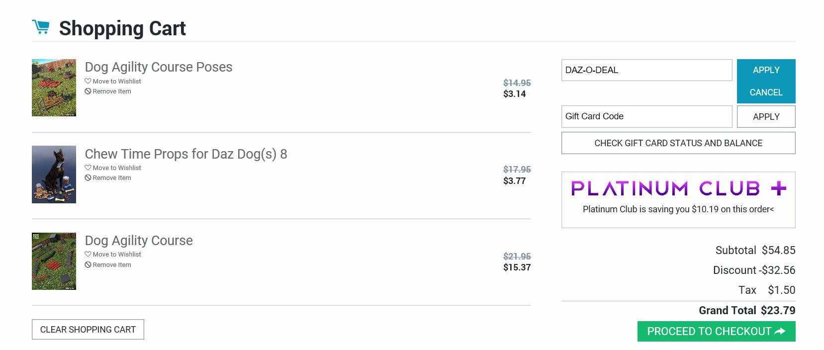 To be clear, I've tested the DAZ-O-DEAL coupon, and it is acting like the previous coupon, requiring exactly three items in the cart. I expect Richard will weigh in on this soon. Real soon, not Daz Soon.