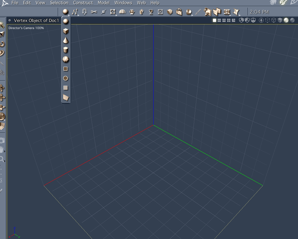 When you do load a primitive shape from within the VM, your mouse cursor will change to a plus sign with a slash above a minus sign ( +/-) What this means is that you can increase or decrease the resolution of the primitive shape by pressing the plus or minus button on your keyboard. To lock it in, press Return. You can't do this with a primitive shape from the Assembly room that has been converted to a vertex object.