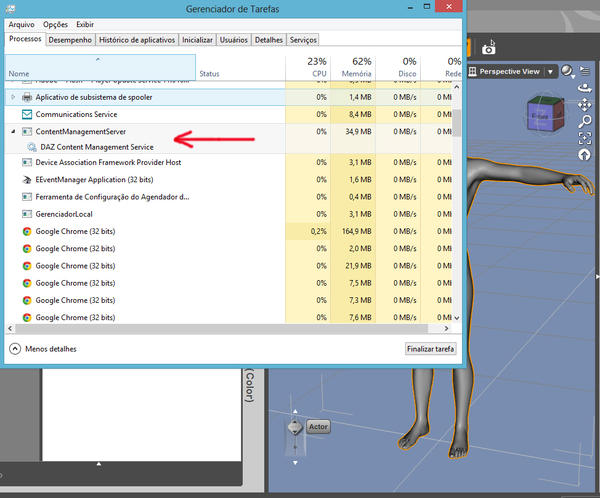 CMS runs as a process in Windows, and should appear in the Processes tab in the Task Manager. If it is not running, you need to go to Start > All Programs > DAZ 3D and start it from there.