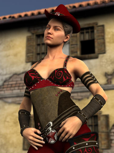 My first render of Gia with default materials dressed in Sheriff clothes. Also used Xanadu hair.