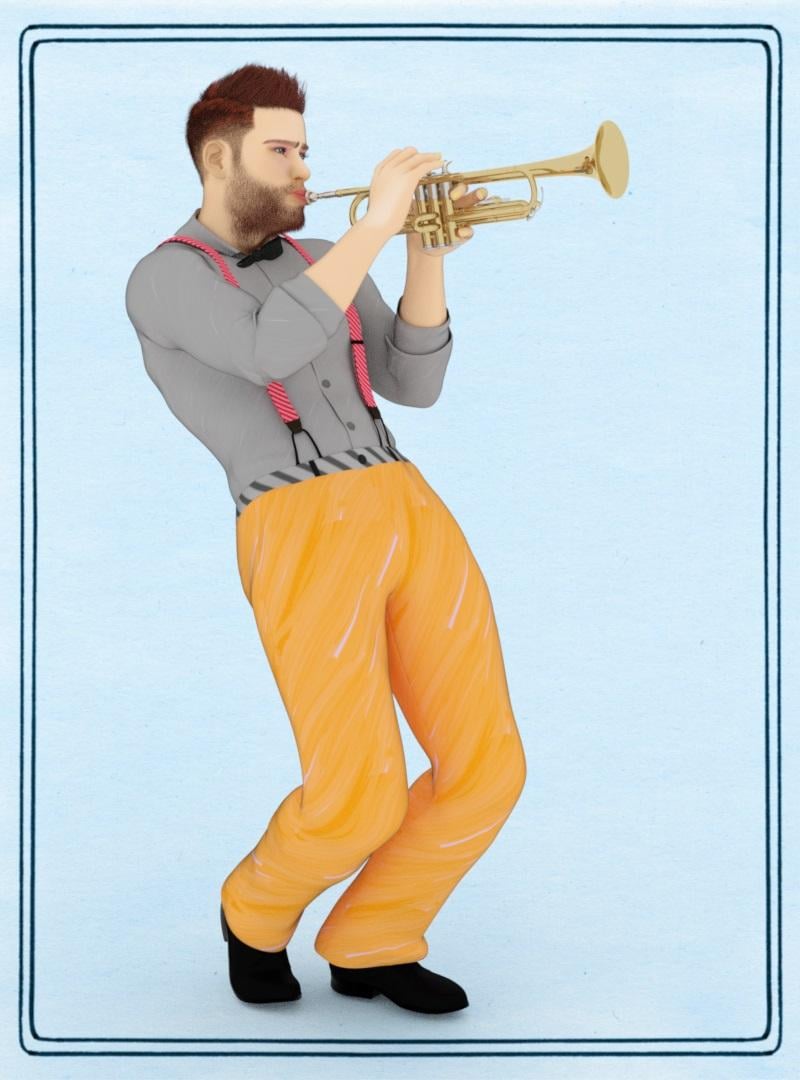 I love the trumpet guy, all the renders are great I love Cartoonish renders