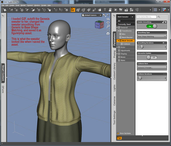 I'm having a terrible time with autofit of Genesis clothes to Genesis 2 Female. The clothes look great right after they are autofit. But once I save the scene and reopen it or save the garment as a figure/prop asset and reload it, the smoothing does not look like it looked when I saved it. Even worse, I cannot change the smoothing settings of the autofitted garment to get back to what I originally had. Changing the smoothing settings does almost nothing.