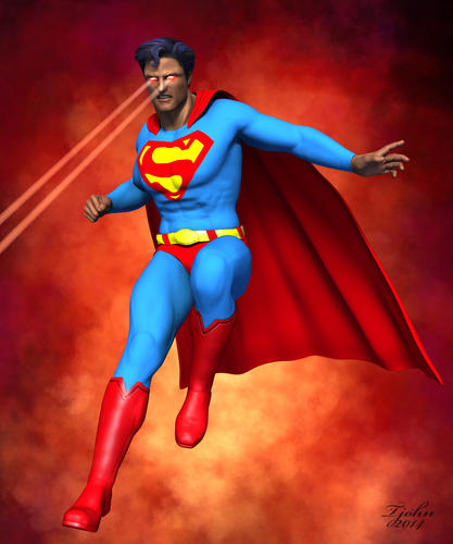 The heat vision effect was not done in post-work but was created "in render" with DA Glowing Eyes and Superbeams.