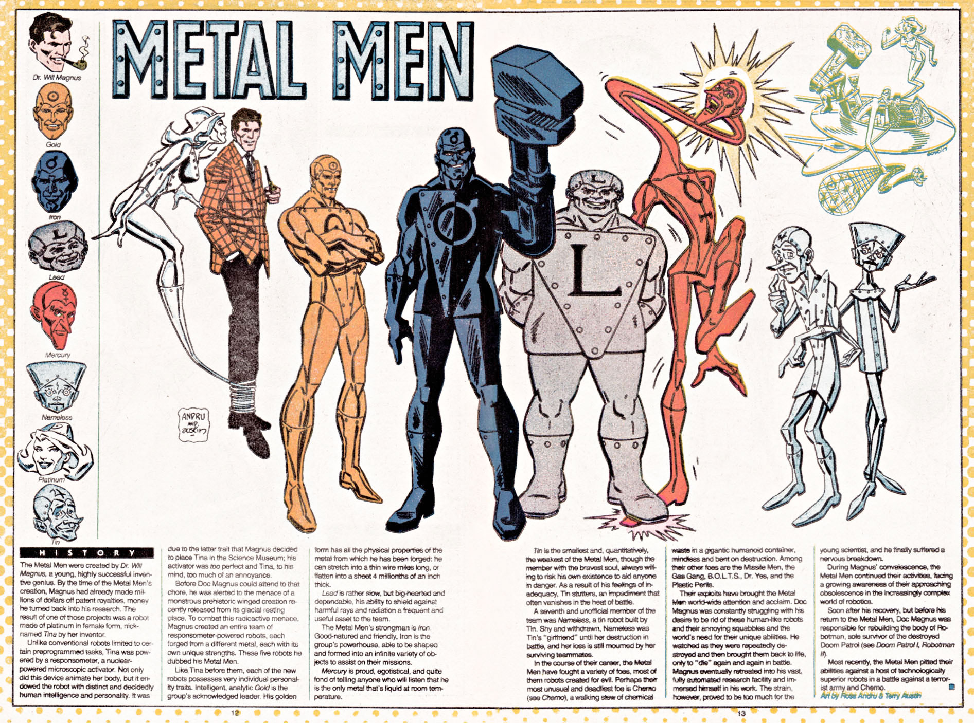 Found a great page with some good info on them, not overly wordy but great idea on heights, widths and facial shapes. I always wanted to see a 3D version of the Metal Men. A total fan of them!