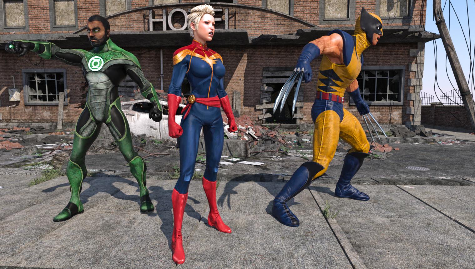 I.ve always liked the idea of Marvel and DC in the same verse. Here is John Stewart, Carol Danvers, and Logan fighting together, supes galore, LOL