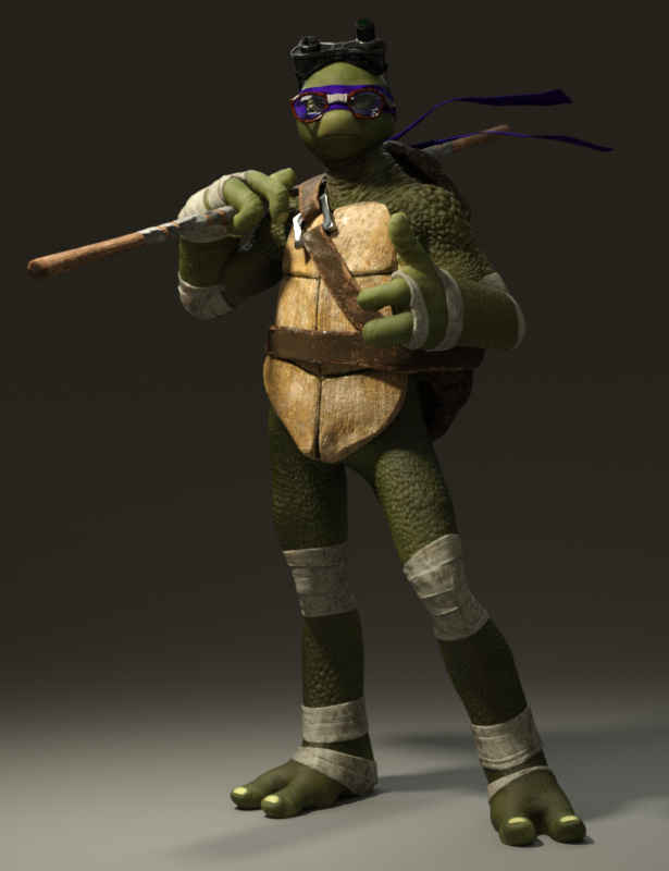 This is what I've got cooking up for Donnie. The Bo is updated and retextured from my original Genesis turtle package. The strap is a refit and retexture from that time period too (something I never got around to sharing). The mask is new, as are the glasses, wraps and goggles.