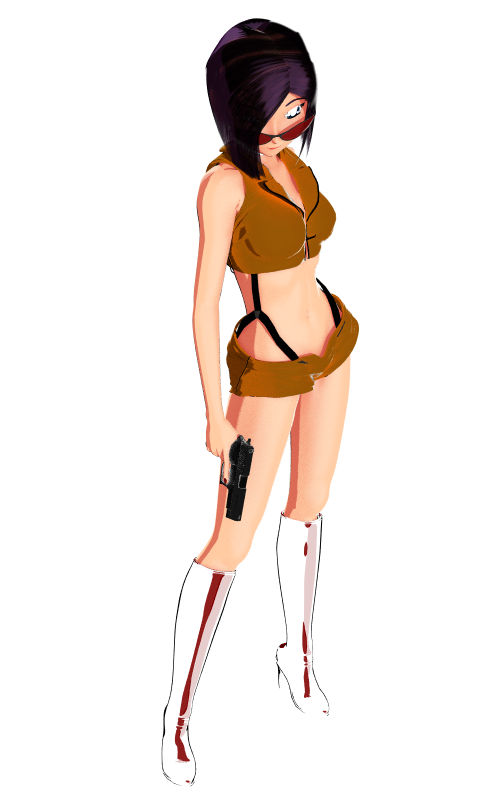 Not your usual superhero:  Faye Valentine of the Cowboy Bebop.  Maya's AnimeDoll in VisualStyle shaders.