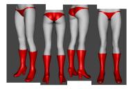 I just found out about Dforce, I've not even tried it yet. The shirt and skirt I just used the DS auto rig and they worked fine. Done for the night, be back tomorrow! Got the bikini done and the boot far enough along to show it. edit, these jpeg screen shots are all pixalated and make the models look rough, they are pretty smooth, no rough edges.