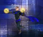 This is the SuperSuit I never released to market for Dusk when I realized that my sales would not reflect the amount of time I put into the project so I shelved it but I did do a couple of renders using it... this is one... has the cape doing it's thing.... Electro Lad for Dusk from Hivewire!