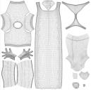 Okay, I deleted the old bikini and gloves because I wasn't happy with them and made new ones. I redid all the UV's so they are now all on the same page, easier to texture. I did some quick tests with the cape, I will be able to rig it to work. I'm going to take a break from this and make something else.