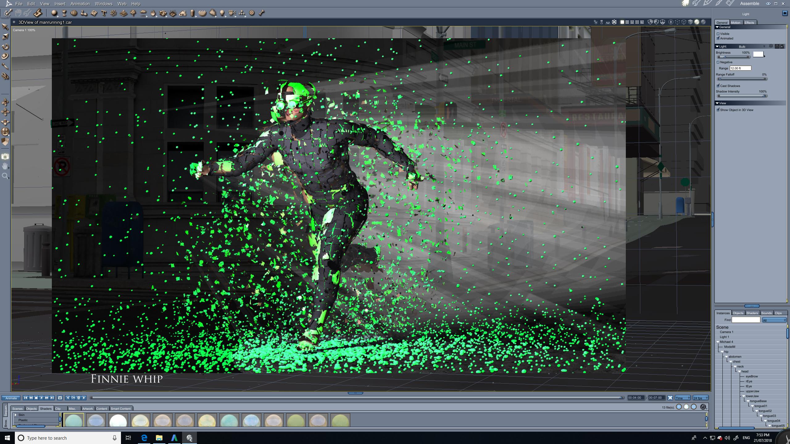The Green Flash logo is another Michael body with an alpha map applied to his torso just to show the GF logo - notr really working at the moment. The logo is circular and saved as a png but Carrara makes it square - dont know why.