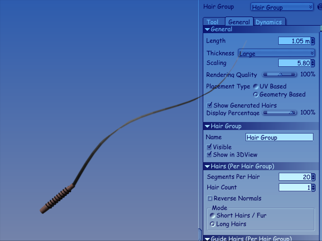 Aw man! I had this fun-sounding sime idea to use a single Carrara hair and make it super thick to use as a sort of dyamic whip, but even at 1000000 scaling it's just tiny. lojl oh well, guess it doean'td work like that.