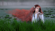 Added Genesis 2 Belle character as the Undine. Then ran the fluid simulation. Next, used long hair for Undine.