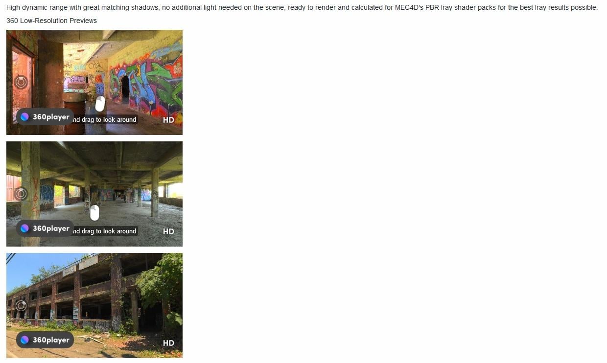 Today suggestion in the " Evolution of the Art of the Promo "  with Mec4D Abandoned Industrial HDRI,  and perhaps the first use of a 360 degree player on the product page giving an opportunity to use your mouse to look around the entire scene. An excellent promotional tool  that may well become a standard.  It allows you to have a good look around.