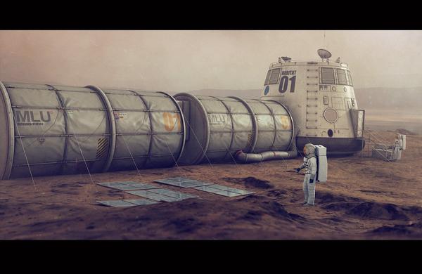 I always like realism in promos and Stonemasons Mars Habitat has a few great promos today. Theres no watermark noting which renderer was used, but they look great just the same. Theres also some haze, fog and depth of field too. I also like the cinematic aspect ratio, gives a sense of breadth and depth.