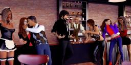 several Mousso characters here Asher, Louissiana, Joanna, Macarena, Dior, and Fan Ling. Two of Asher one in the jacket also added some body morphs of Vladimer and Ashwyn and tattoos though you can't really see that in this version, there'll be another version on my deviant soon showing more. The bar tender isn't a Mousso that's russel