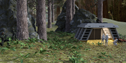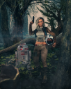 A nice jungle setting. Hope she didn't lawn-dart her X-Wing into the roof of Yoda's house...
