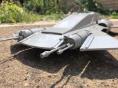 I have a quick update for anyone interested in the 3D printable Pirate Snub Fighter (R-41 Starchaser) as featured in The Mandalorian Season 3. I can now confirm that the prototype test print of this asset has now been completed without issue. All the parts fit together without any problems, and I'm happy to say the print came out looking great. So I'll now be looking at getting this ready to go to market. I may wait until I get some photos of the seperate parts, cured and primed, to show that aspect in the promotional material, but effectively this is good to go now. So I'll be getting the ball rolling and get this asset out the door and to you guys as swiftly as I can. In the meantime here are a couple of rough shots of the parts we have had printed. These wil look a lot cleaner once cured and primed, and the parts haven't been fully put together, as they'd be problematic to take apart before being cured, as being a resin print the parts are quite sticky before they get cured. Still, from these images you can get a good idea of what we have. More polished promo shots will be done when the parts are finished. We'll also be looking at rolling out STL files first, for those who have a 3D Printer, and can print the files themselves, and then we'll guage what the demand is for actual kits of the model, for those who don't have their own 3D Printer, and decide whether or not to offer that as an option too.